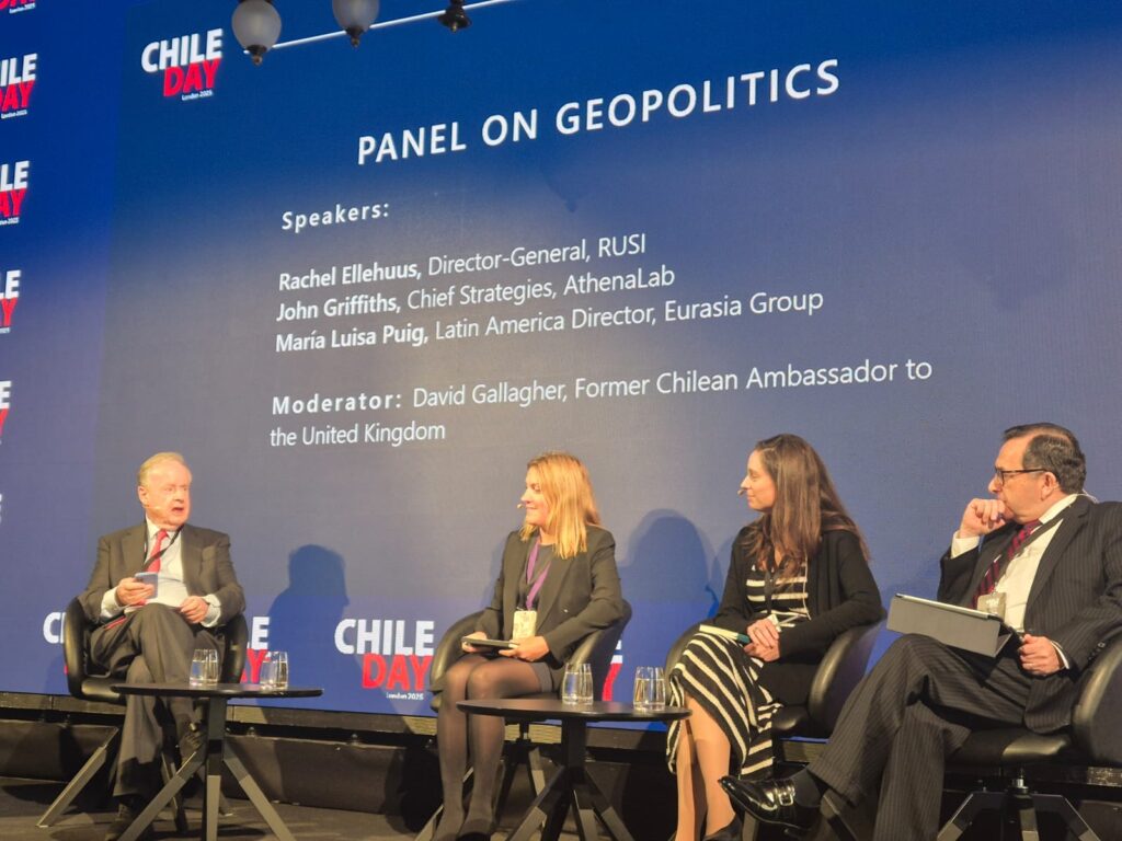La directora de RUSI se refirió a la situación geopolítica global, mientras que María Luisa Puig, abordó la situación regional. Por su parte, la intervención de John Griffiths estuvo enfocada en los desafíos geopolíticos y de seguridad de Chile, en el contexto anterior. La actividad fue moderada por el ex embajador de Chile en Londres, y miembro del Consejo Asesor de AthenaLab, David Gallagher. Cabe destacar que es la primera vez que en dicho evento se realiza un panel enfocado en temas de seguridad y geopolítica.